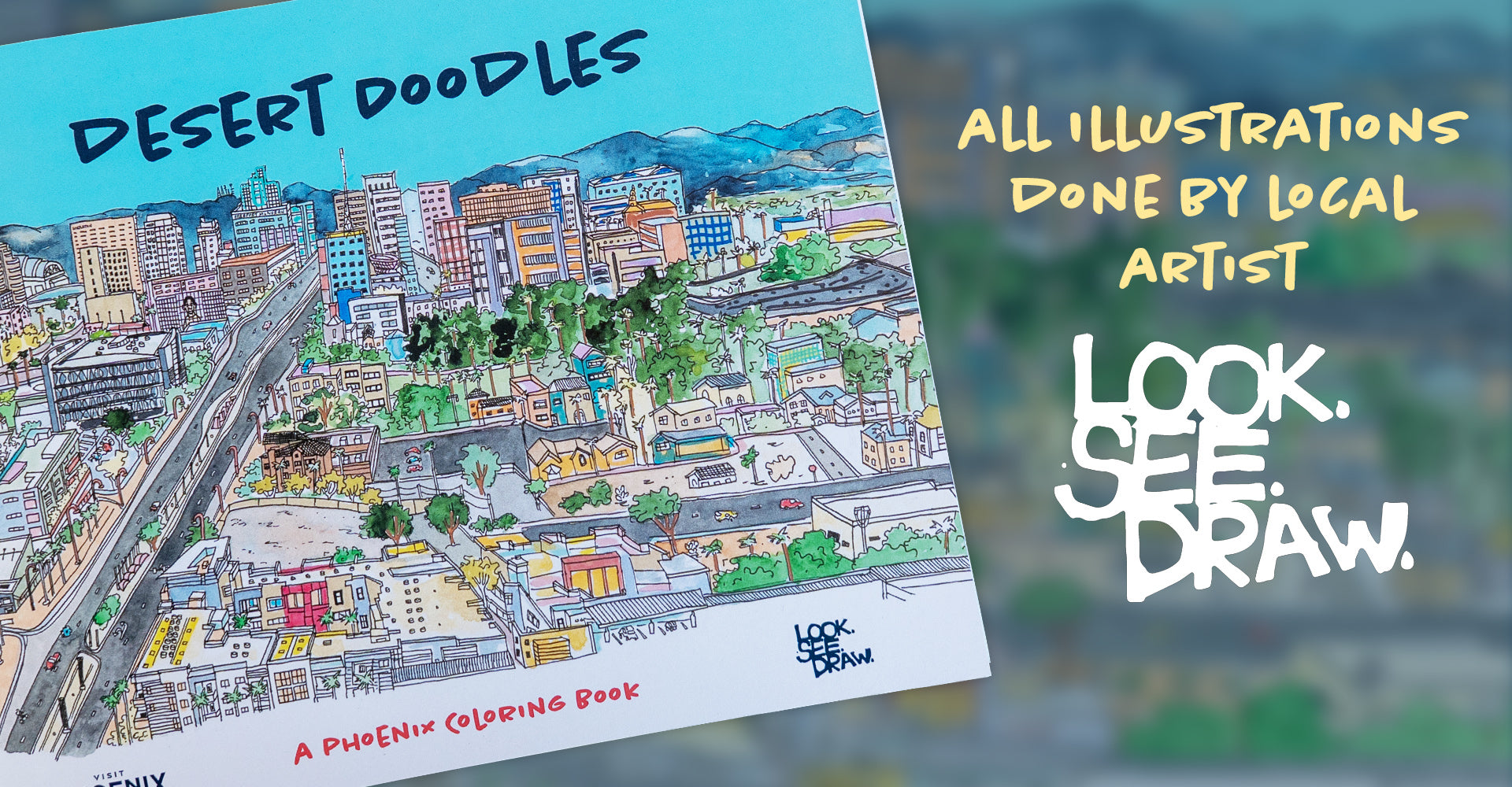 This fun, hand-drawn style design combines desert scenery with classic baseball icons, bringing the Cactus League to life through bold, playful illustration. Bold icons bring energy and contrast, capturing the unmistakable spirit of spring training in Phoenix.